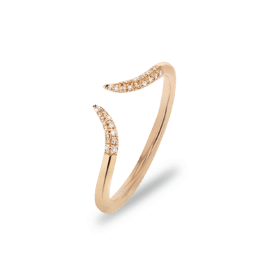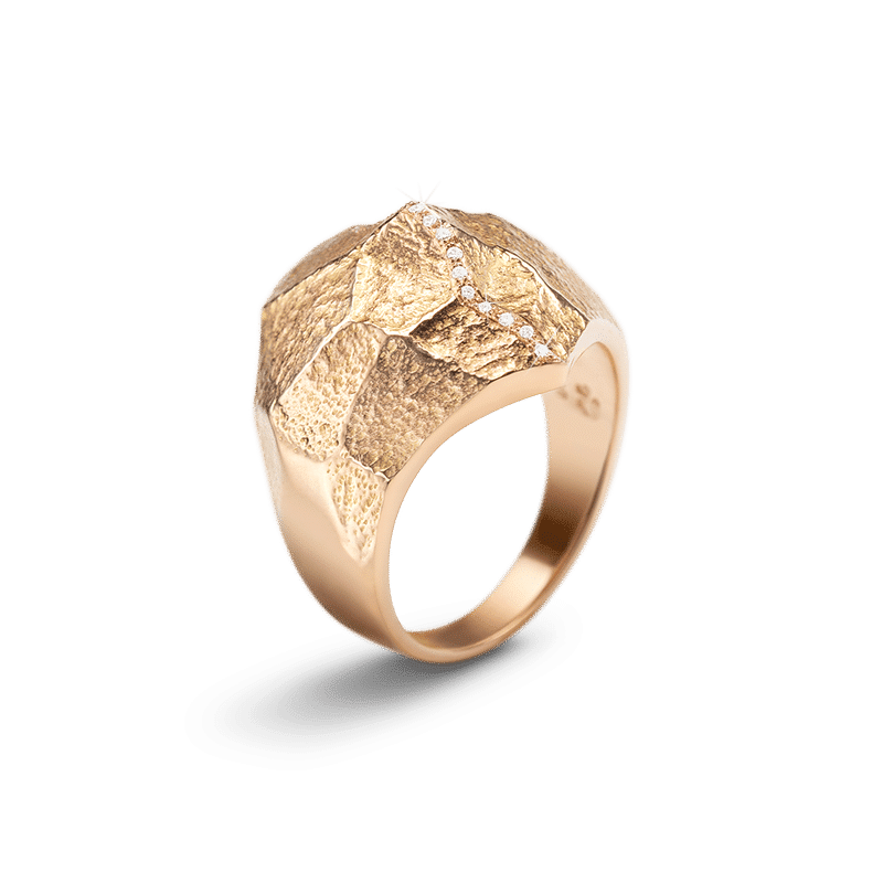 Bague en or rose 18 carats, sertie de diamants G-VS 0,076ct. Surface facettée et texturée "rock".