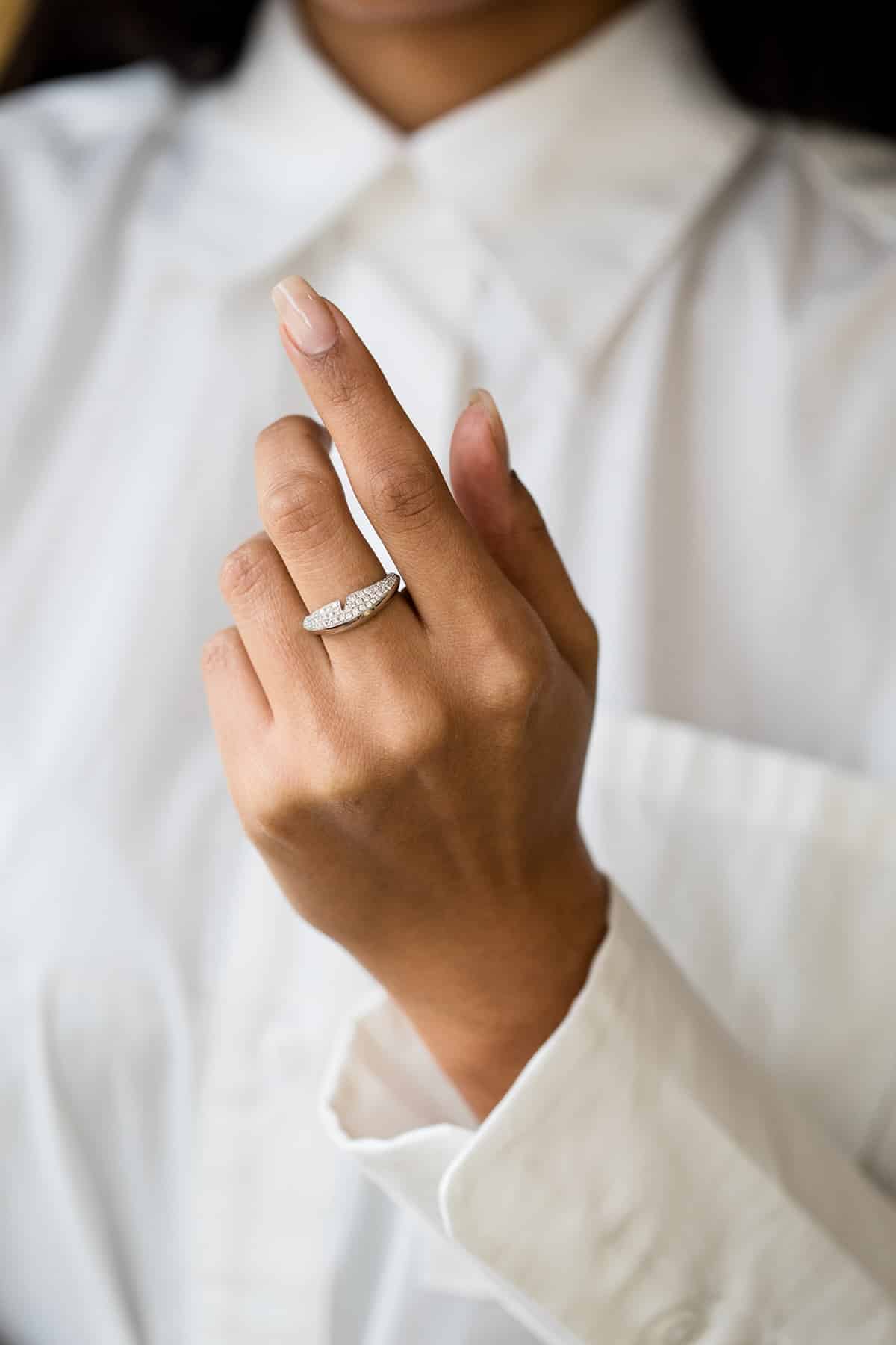Bague Plume en or gris 18 carats, sertie de diamants G-VS 0.40 ct.