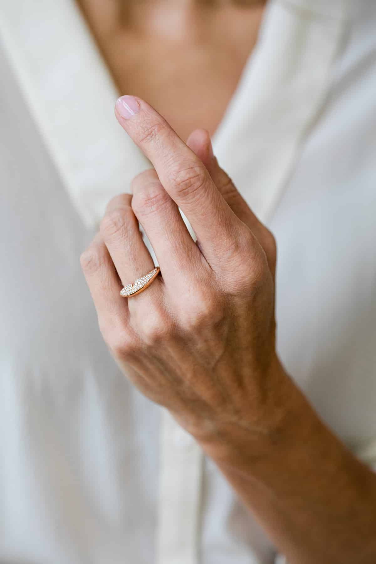 Bague Plume en or jaune 18 carats, sertie de diamants G-VS 0.40 ct.