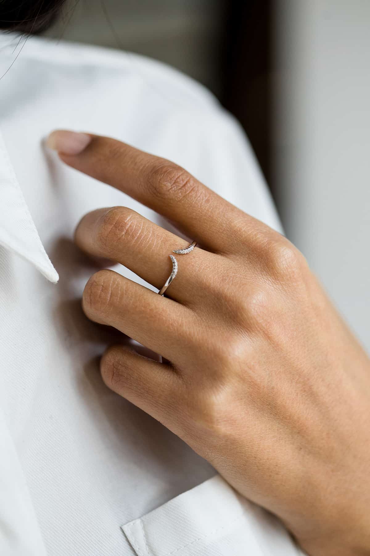 Bague en or gris 18 carat, sertie de diamants G-VS 0.10 ct.
