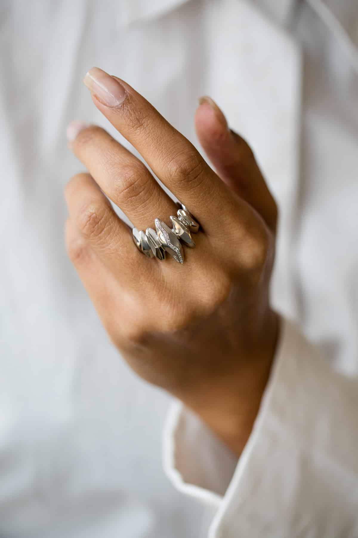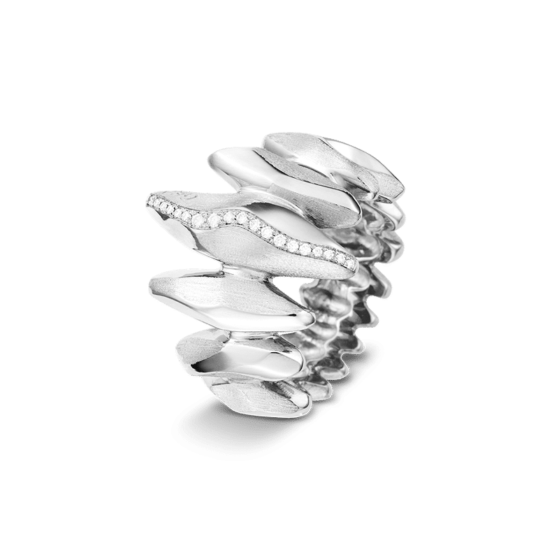 Bague Feu en or gris 18 carat, sertie d'une ligne de diamants G-VS, 0.066 ct .