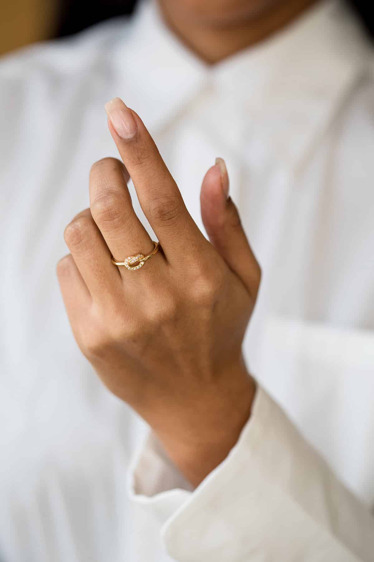 Bague en or rose 18 carats, sertie de diamants 0.08ct.