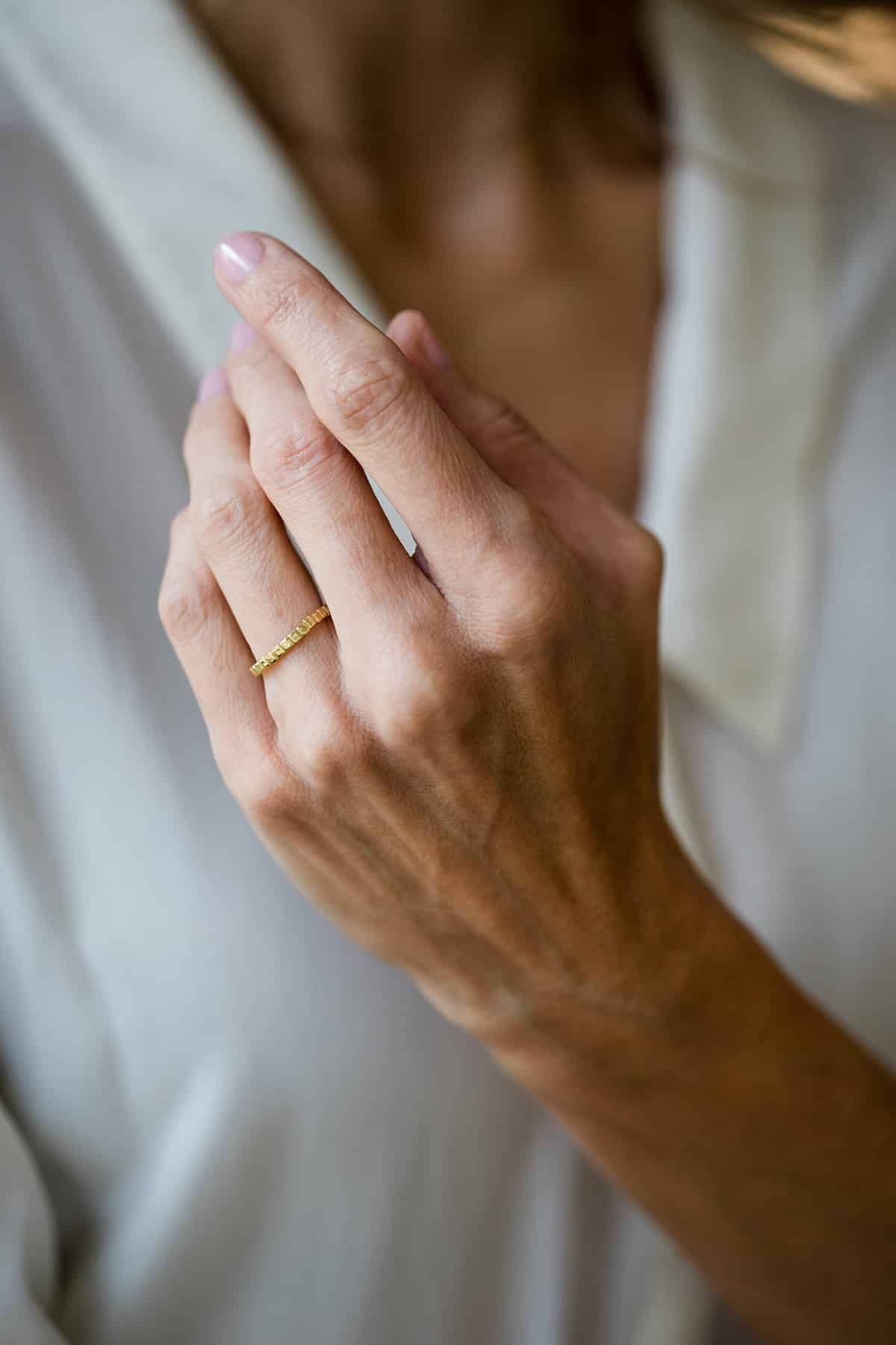 Bague en or rose 18 carats. Effet "pavé" irrégulier.