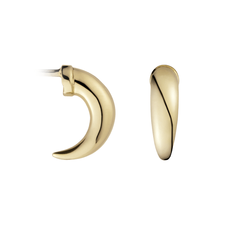 Boucles d'oreilles en or jaune 18 carat. Demies créoles en forme de corne.