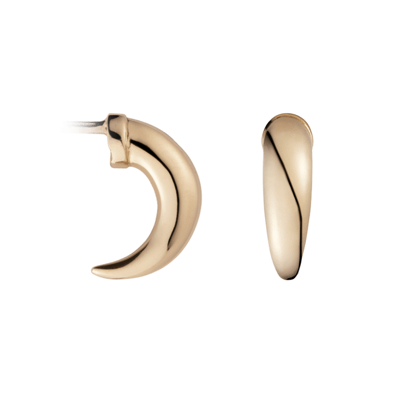 Boucles d'oreilles en or rose 18 carat. Demies créoles en forme de corne.