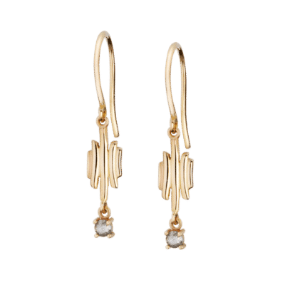 Dormeuses en or jaune 18 carats satiné, pampilles serties de 0.18 ct de diamant taille rose.