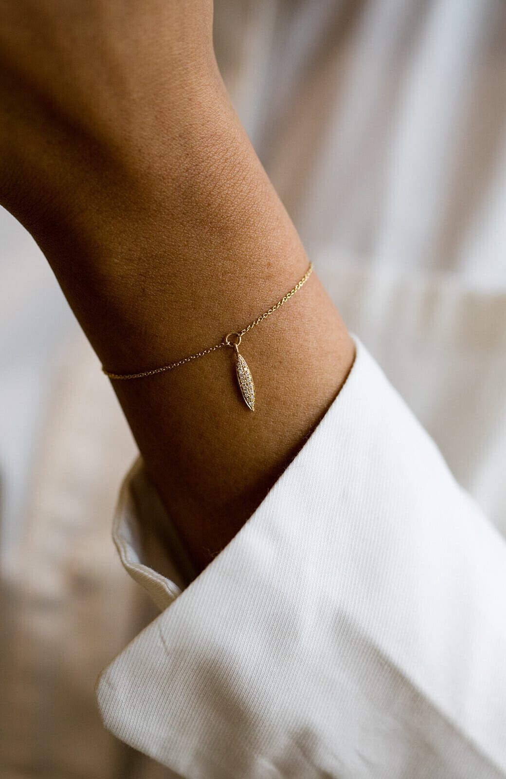 Bracelet en or rose 18 carats. Petite plume sertie de diamants G-VS 0.07ct.
