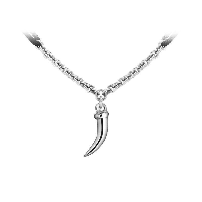 Bracelet en or gris 18 carat. Petite corne sur chaînette et cordon nylon noir.