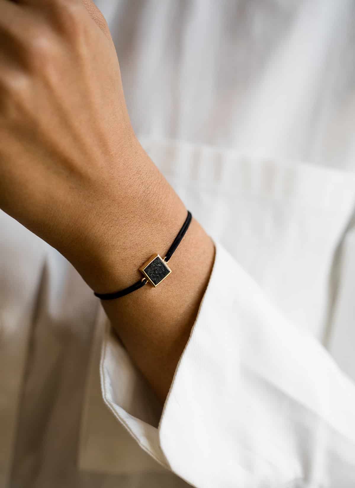 Bracelet en or rose 18 carats et un pavé de granite noir. Monté sur cordon.