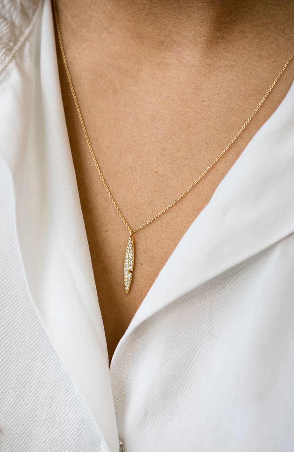Pendentif Plume sertie en or jaune 18 carats, diamants G-VS 0.20ct. Sur chaîne de 45-50 cm.