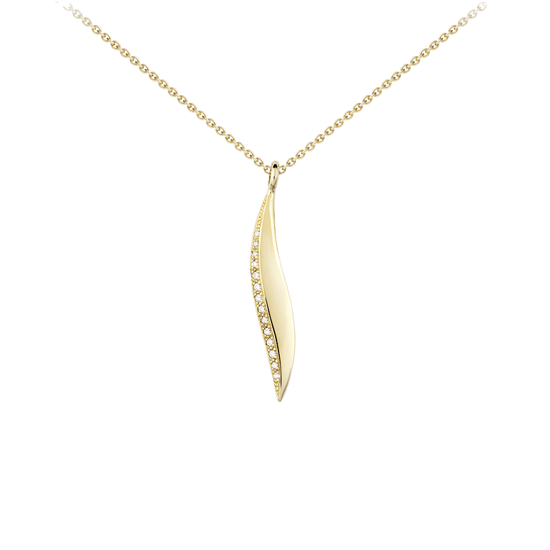 Collier amazonia maille forçat et pendentif plume en or jaune 750 serti d'une ligne de 0.10ct de diamant G-VS.