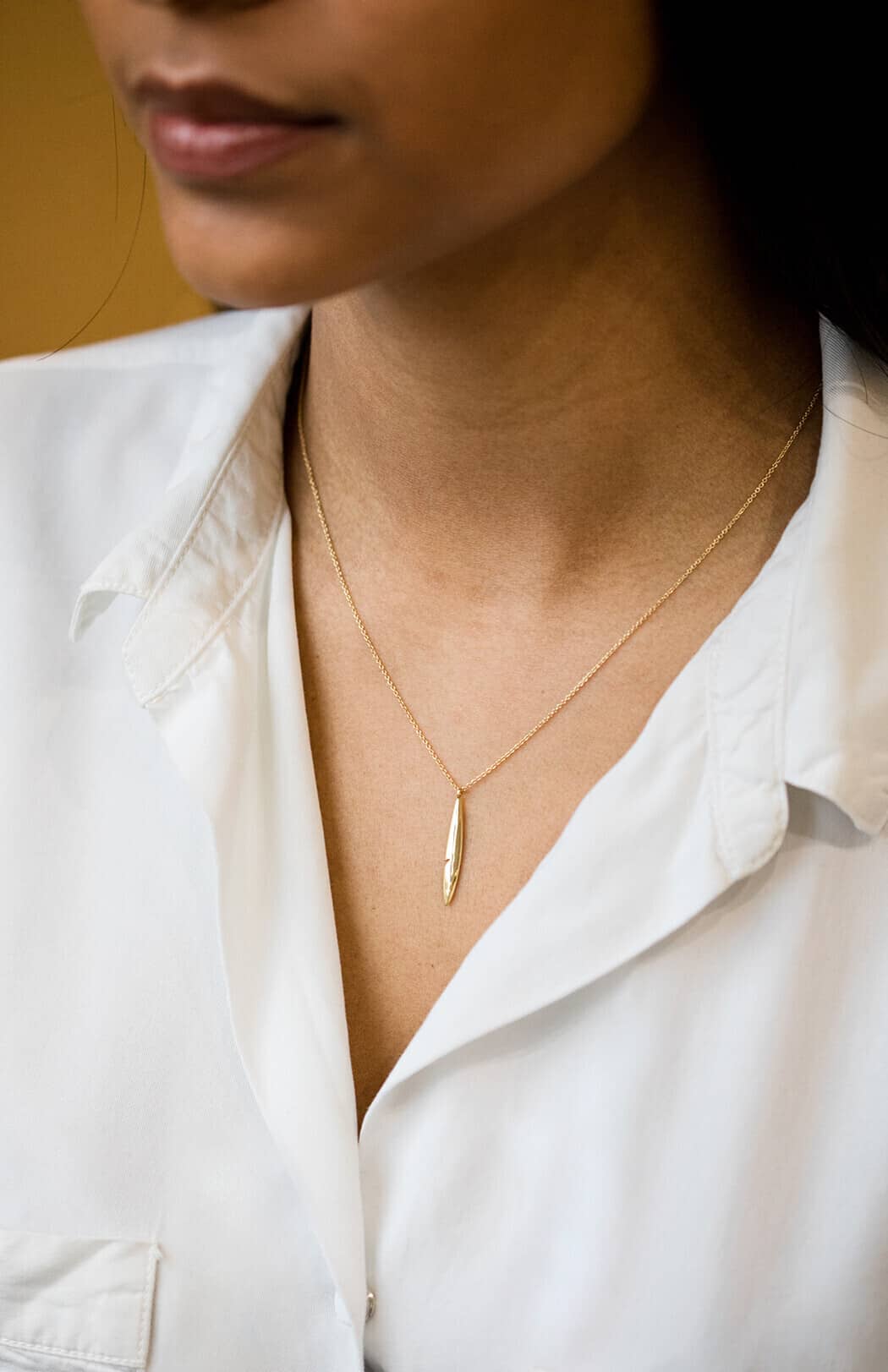Pendentif Plume en or jaune 18 carats. Sur chaîne 45 cm.