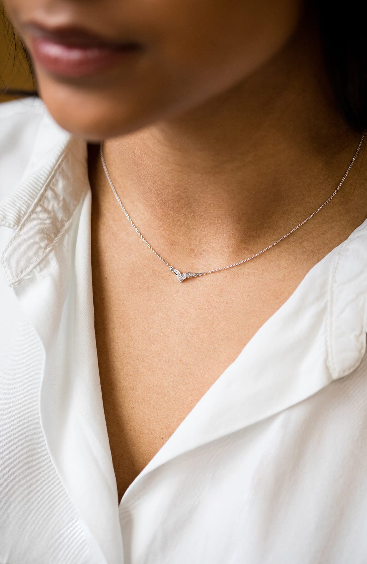 Collier Bird « petit » en or gris 18 carats serti de diamants G-VS 0.06ct.