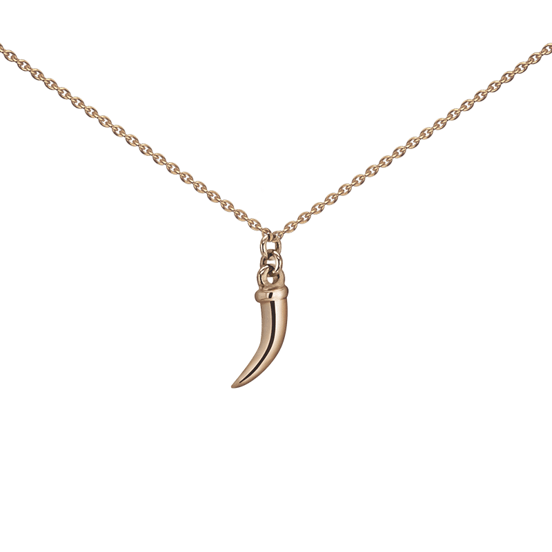 Petite corne en or rose 18 carat sur chaînette maille forçat 42-45cm.