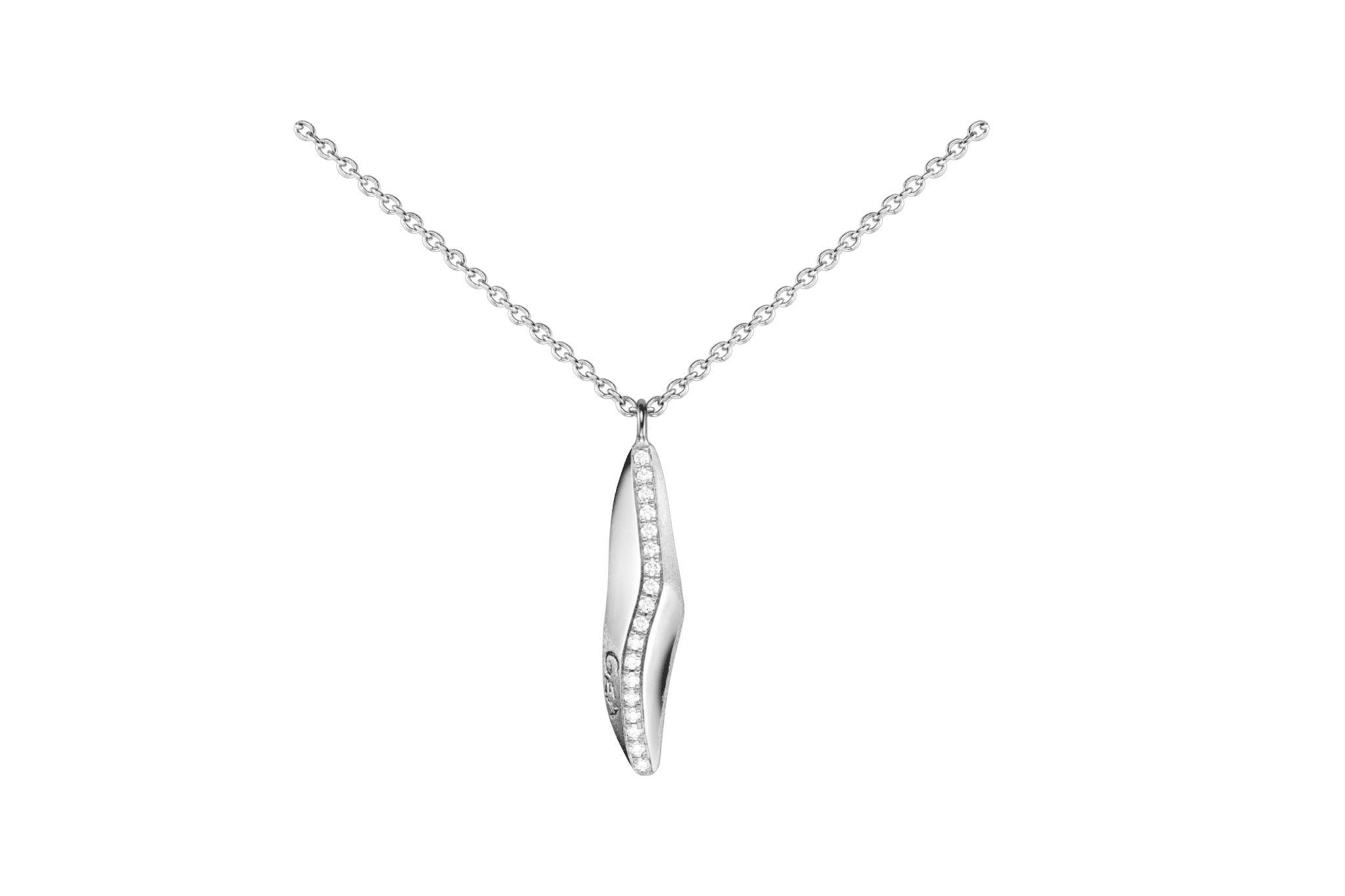 Collier maille forçat et pendentif pépite feu en or gris 750 sertie d'une ligne de 0.05ct de diamants G-VS