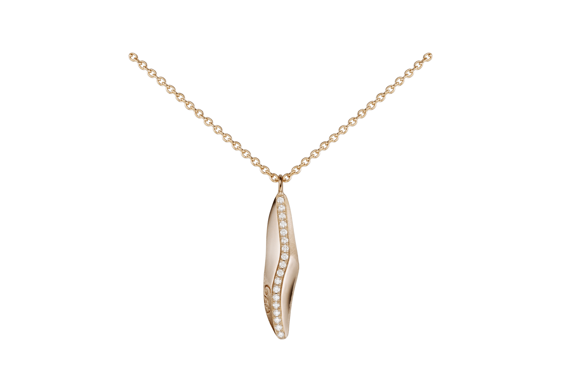 Collier maille forçat et pendentif pépite feu en or rose 750 sertie d'une ligne de 0.05ct de diamants G-VS