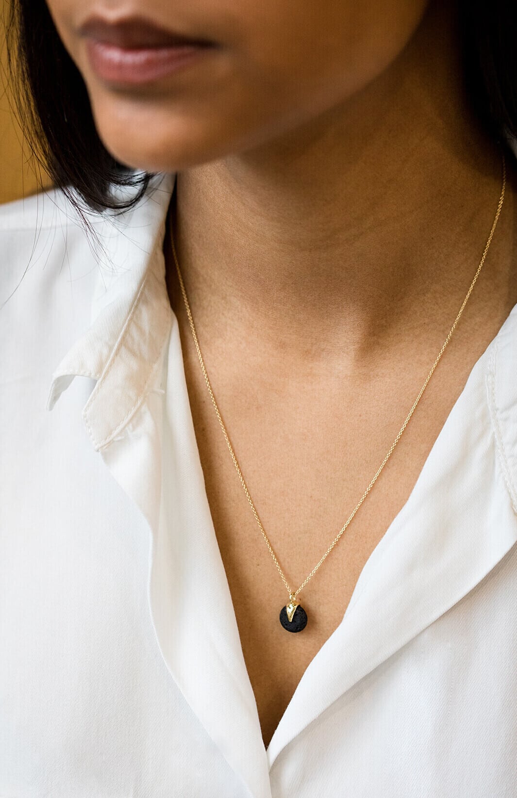 Collier maille forçat et élément en or rose 750 pendentif en pierre de lave