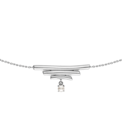 Collier en or gris 18 carats satiné, pampille sertie d'un diamant 0.10 ct taille rose.