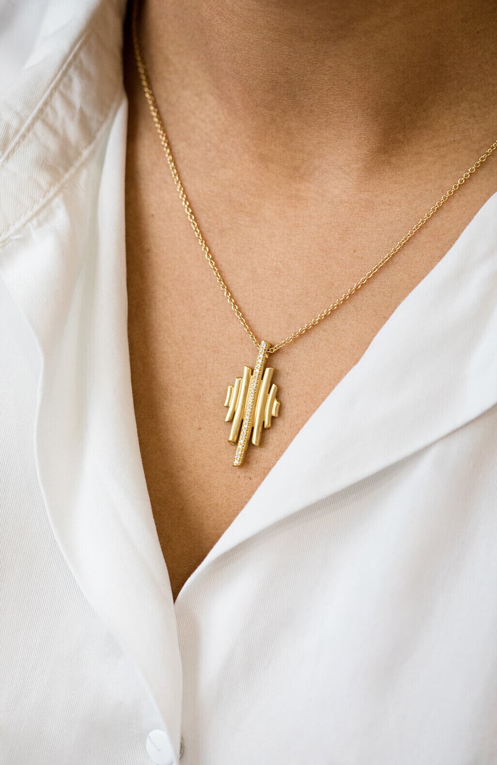Collier en or jaune 18 carats satiné, ligne sertie de 0.17ct de diamants G-VS. Longueur 42-45 cm.